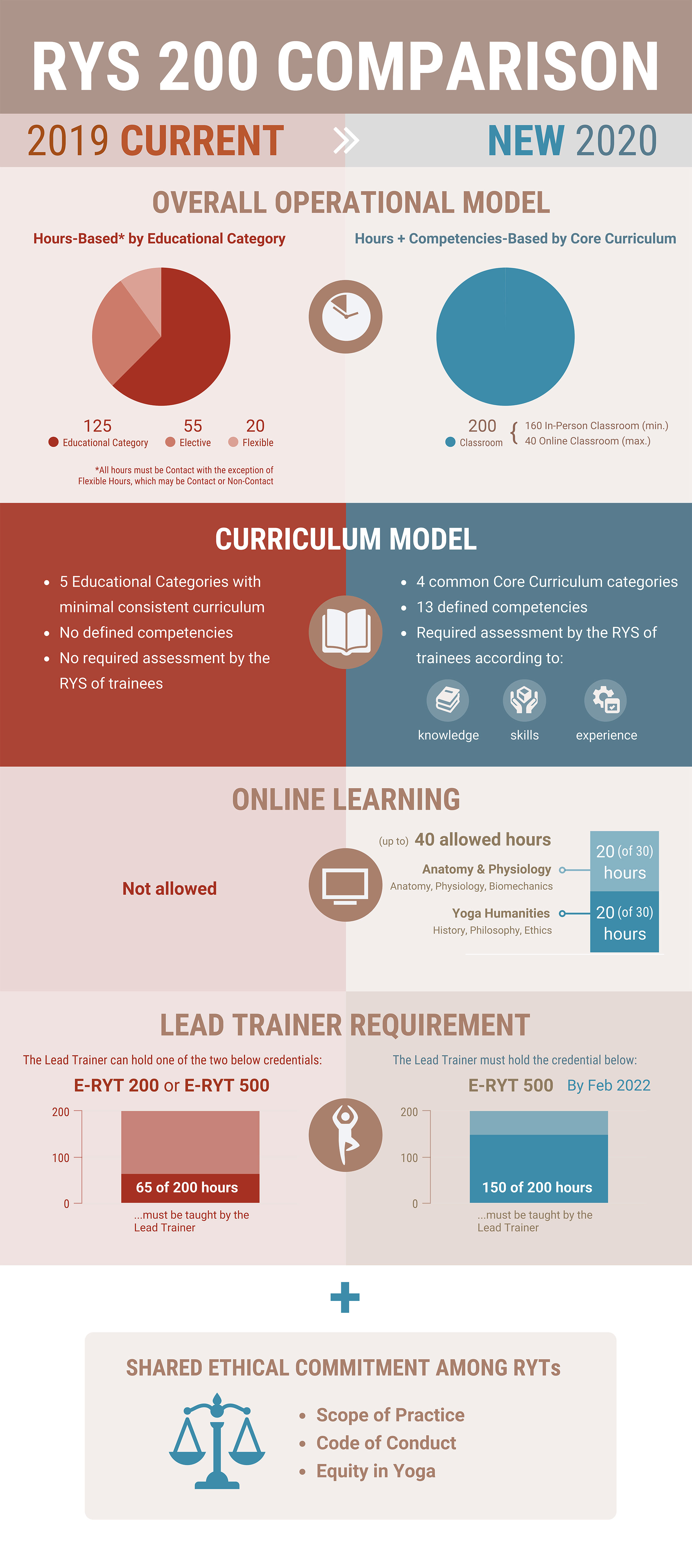 Below is an infographic that highlights the significant changes to the underlying standards of the RYS 200 foundational teaching training credential.